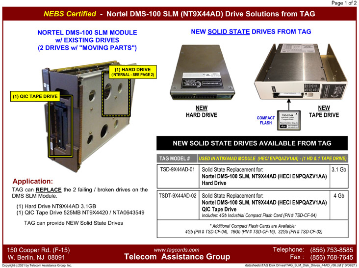 Nortel DMS-100 SLM (NT9X44AD) Drive Solutions from TAG (,PDF)